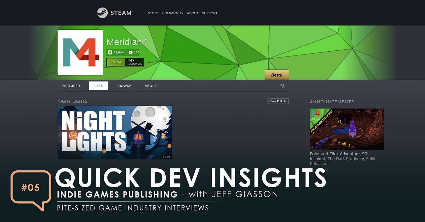 Hi! I’m Jeff Giasson. I am the owner/founder of Meridian4, an indie game publisher. Meridian4 was started in 2004 with the goal of helping developers in Europe bring their games to North American retail chains like Wal-Mart, Gamestop, Best Buy, etc. When Steam entered the scene we were quick to see the future of digital distribution. In fact, Meridian4 is partner #17 on Steam. Moving forward I am helping developers to get out of the mindset that Steam is the be-all. There are other options, in conjunction with Steam that should not be ignored.